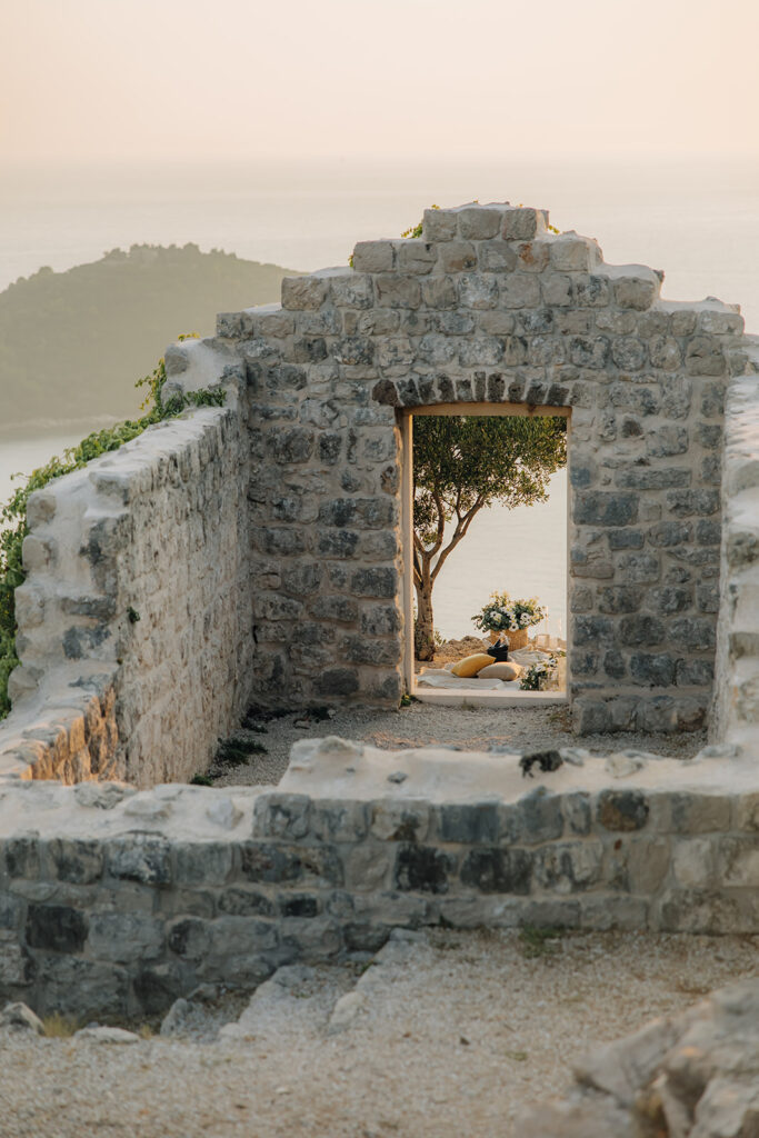 When it comes to intimate events like proposals, no other venue in Dubrovnik comes close to the enchanting beauty of Park Orsula. Away from the bustling city, on the cliffside, Orsula provides a peaceful and private escape for couples. The most popular choice for a proposal is most definitely the old chapel – adding a touch of history and rustic charm. The chapel and the views of Lokrum island and the Old town create an ideal backdrop for any romantic moment. A sunset proposal at Orsula is particularly magical as the sky transforms into a canvas of warm colors.