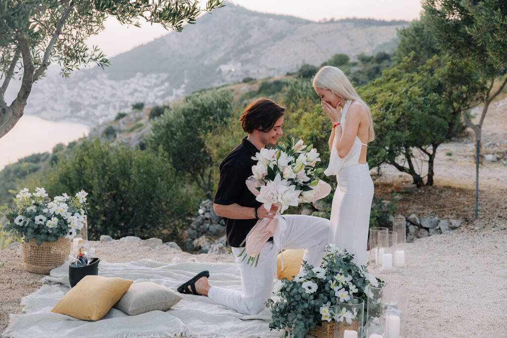 Alan decided to propose to Alicja in Dubrovnik and Orsula has peaked his interest. He went with a neutral picnic setup – candles, pillows, flowers and a bottle of champagne.